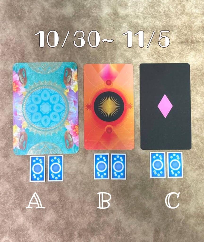 A、B、Cの中の直感で1枚のカードを選んでから読み進めてくださいね。今週は1枚+2枚の補助カードです。