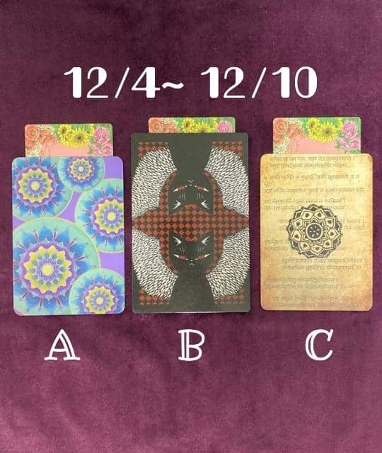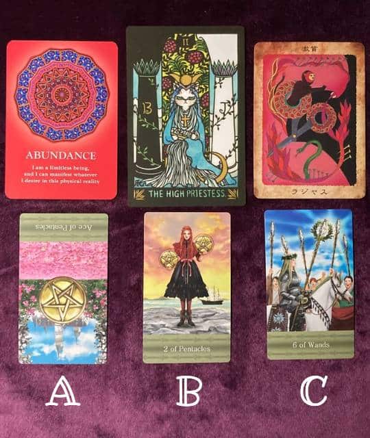 A、B、Cの中の直感で1枚のカードを選んでから読み進めてくださいね。今週はタロットです。